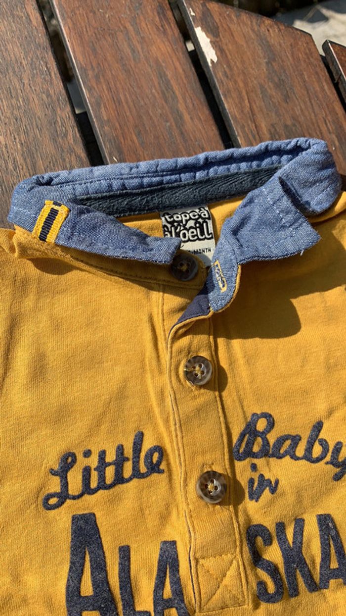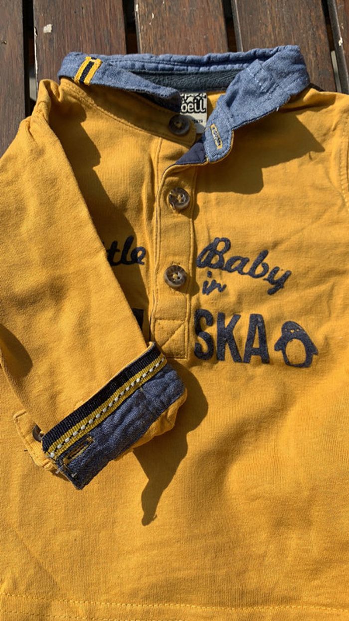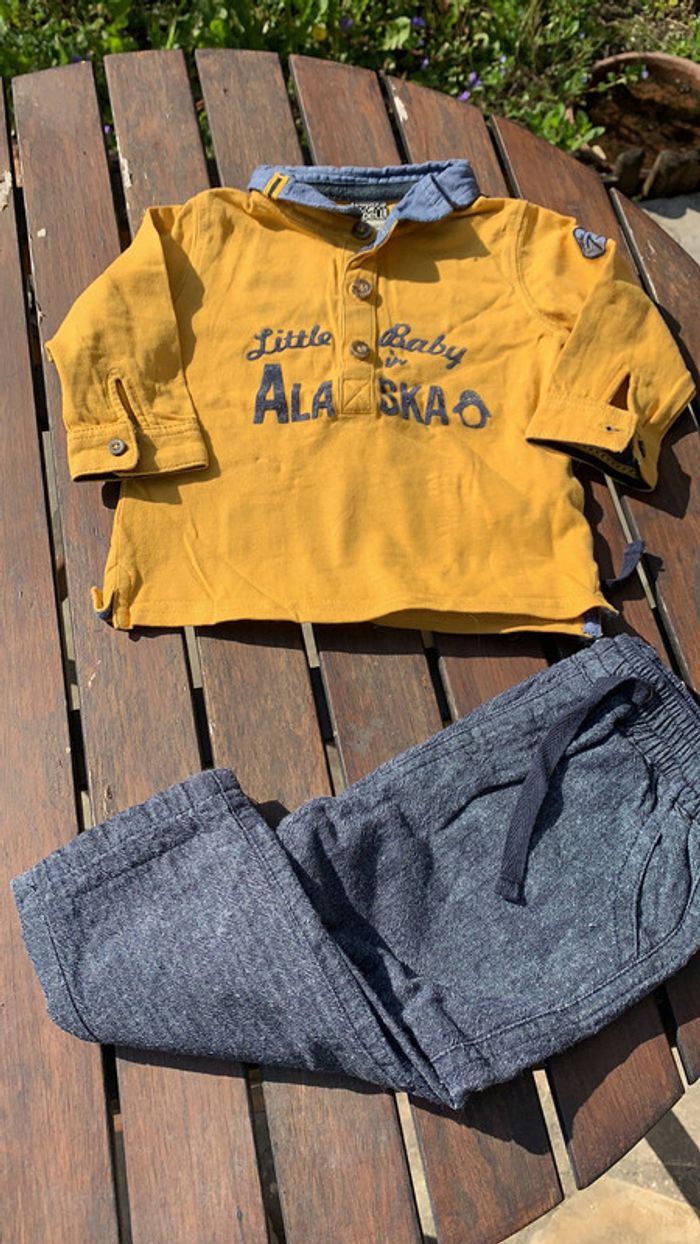 ensemble composé d’un polo manches longues moutarde et marine et effet jean. pantalon taille élastiquée doublé coton. ⚠️ taille 6 mois