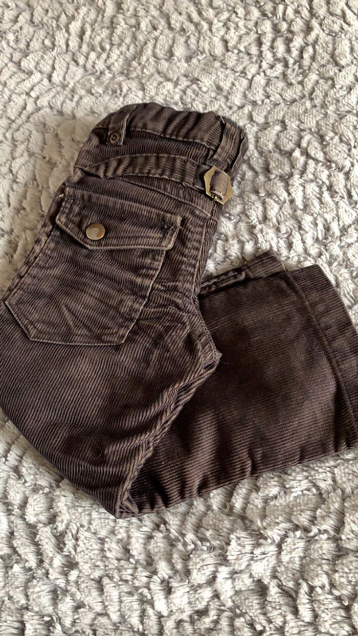 pantalon en velours côtelé très joli. marron foncé avec des reflets. ceinture réglable. poches à l’avant et à l’arrière. ⚠️ taille 2 ans