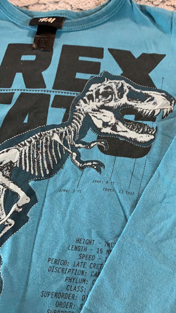 teeshirt manches longues motif t-rex 🦖 en très bon état taille 2-4 ans