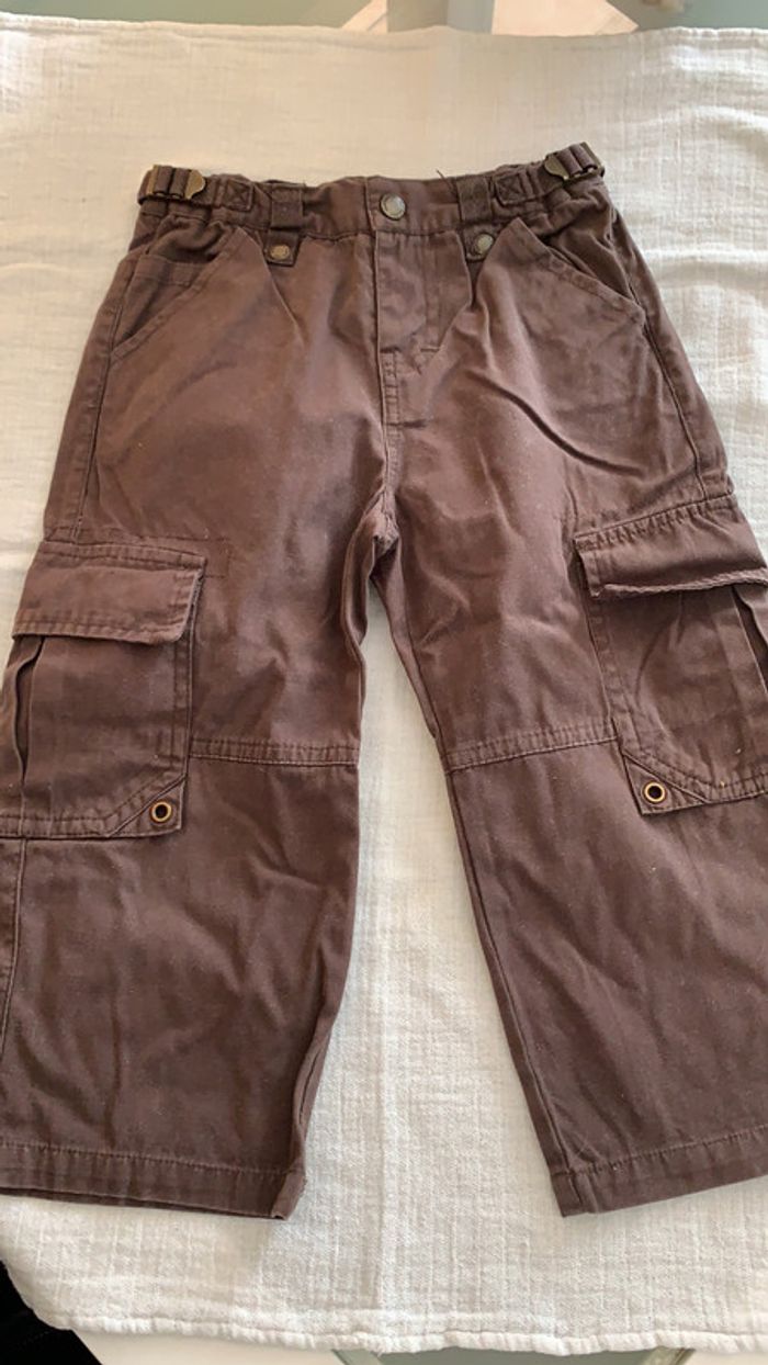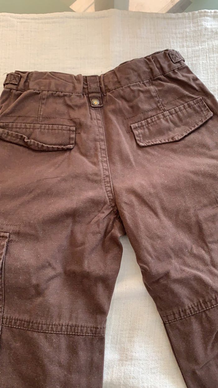pantalon marron fermeture à pression, réglable à la taille. pleins de poches. en très bon état. taille 86cm