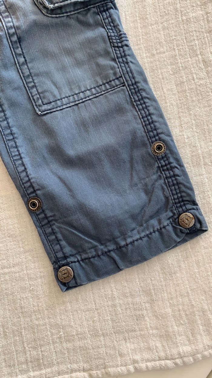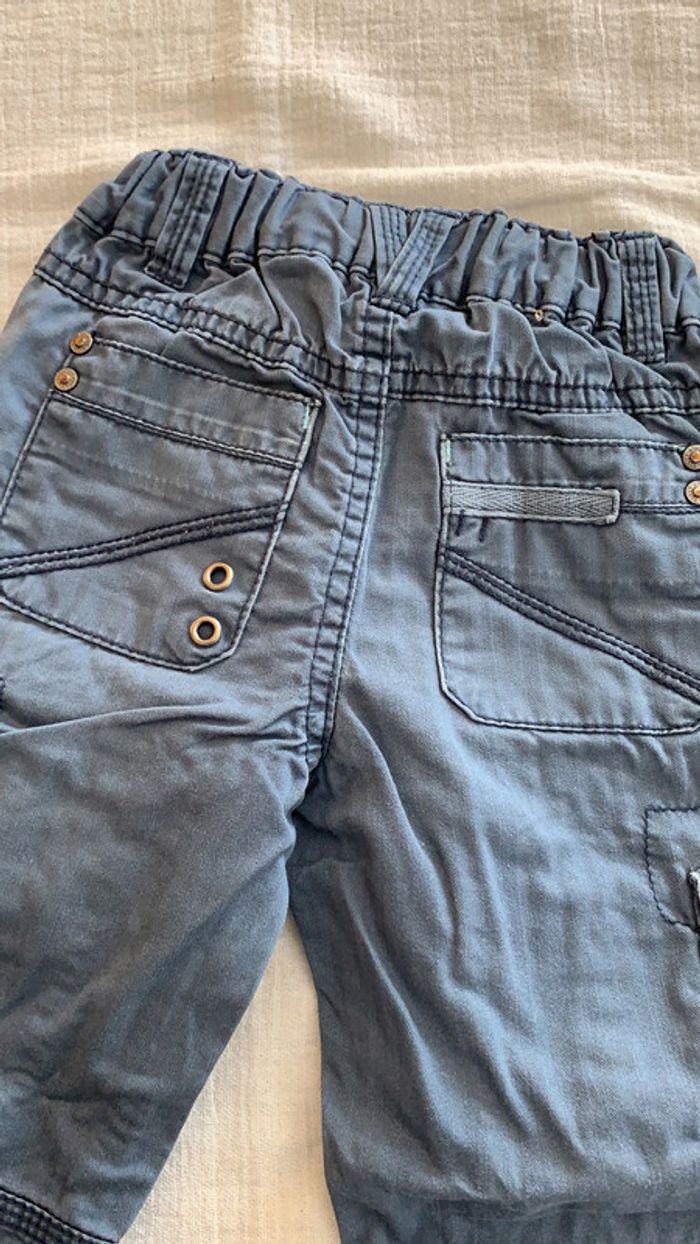 jean en très bon état. bouton pression et réglable à la taille. pleins de poches. détail sympa les jambes sont réglables en hauteur grâce à un système de pression (voir photo) taille 2ans
