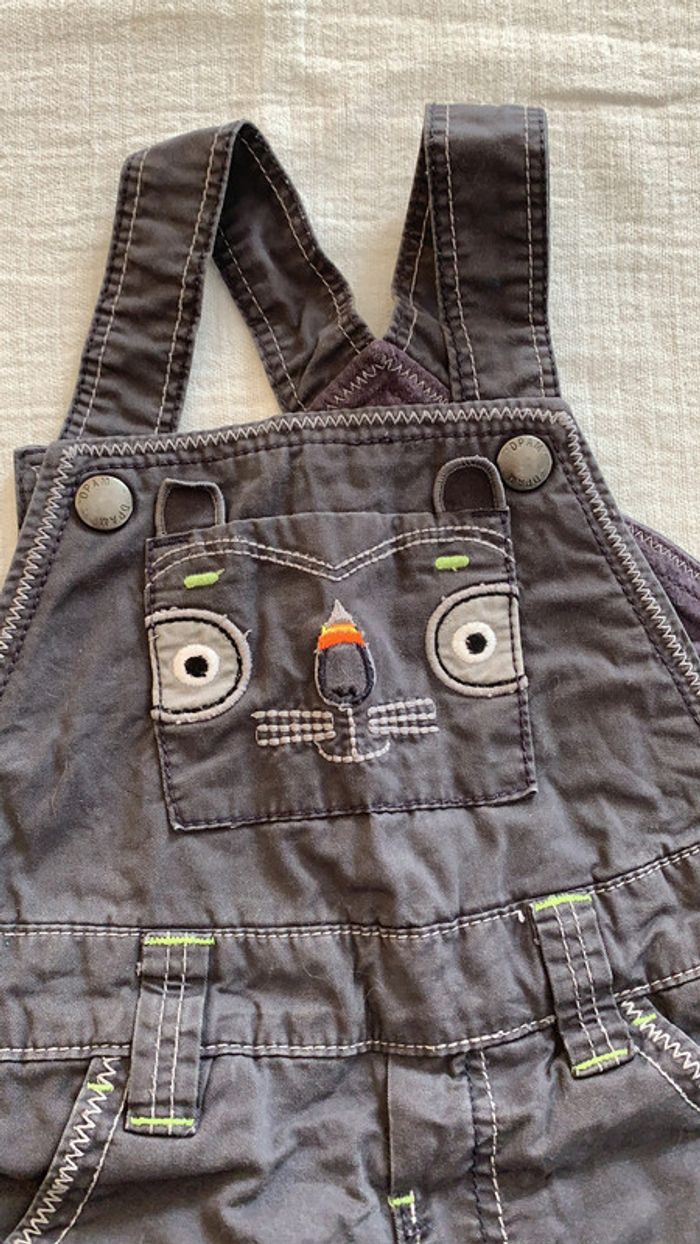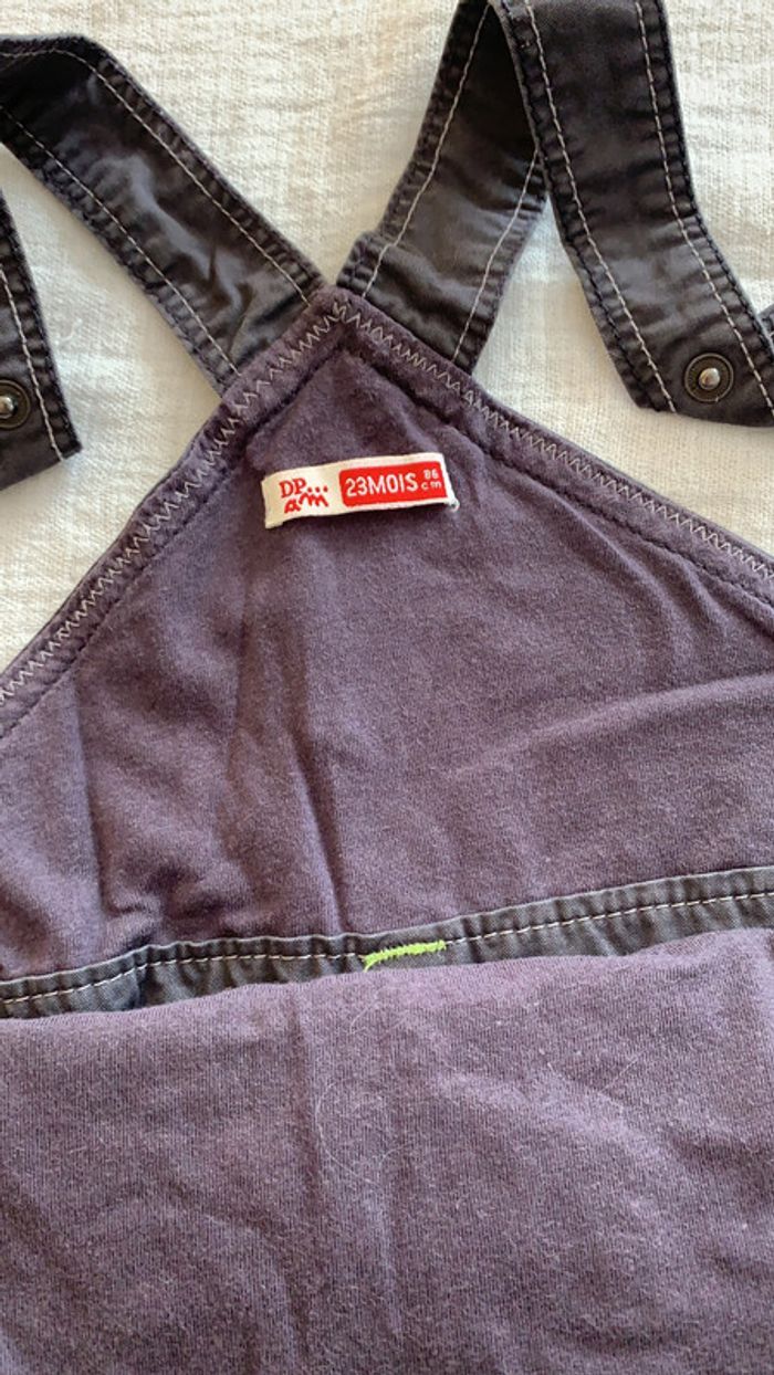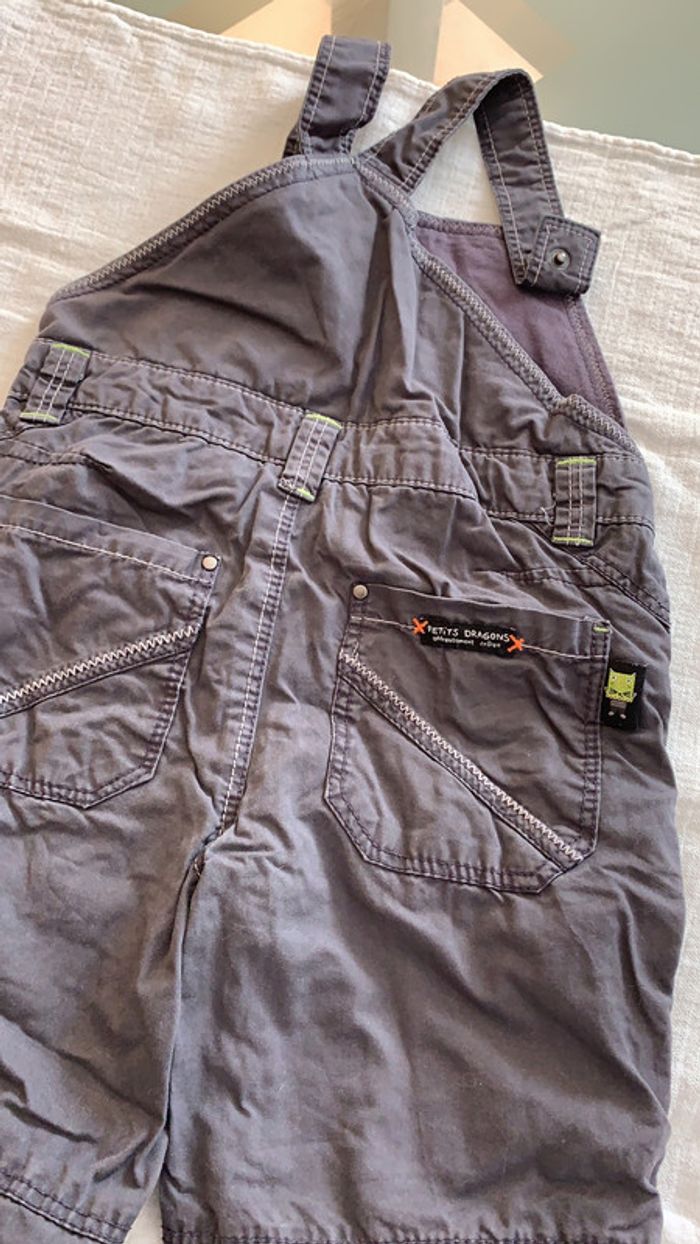 salopette en excellent état. doublée épais. poches à l’avant et à l’arrière. bretelles à pressions réglables. taille 86cm