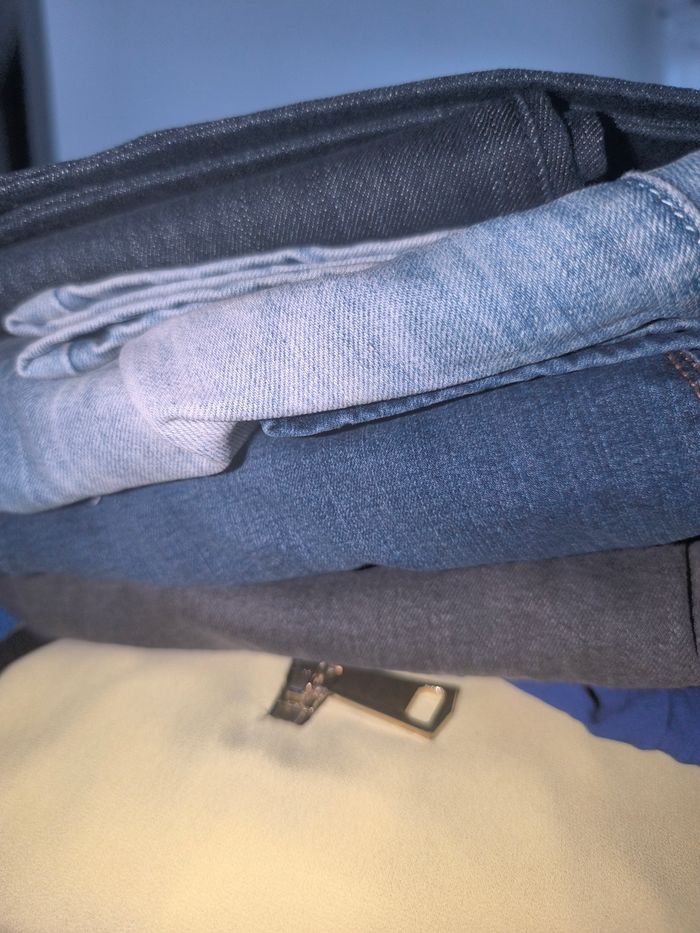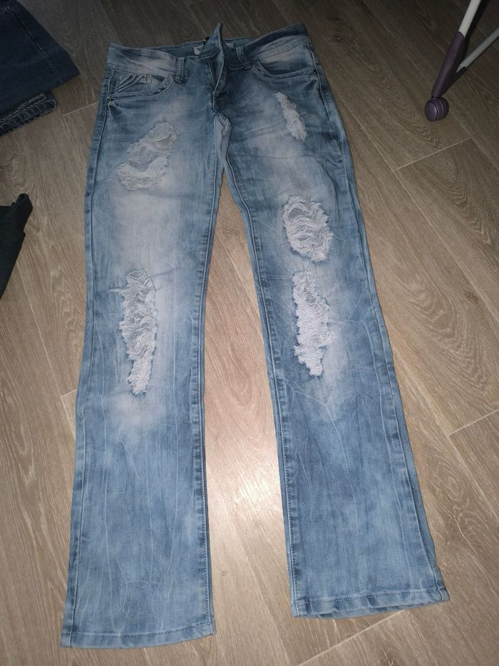 4 jeans femmes 1 bleu clair troué taille 42 1 jean bleu foncé Jennyfer taille 40 un peu patte d'éléphant avec 6 poches 1 jean slim Camaïeu bleu taille 42 porté 2 fois 1 jean troué noir Kiabi taille 42 Vends en lot non négociable Pas de réservation 1er arrivé 1er servi
