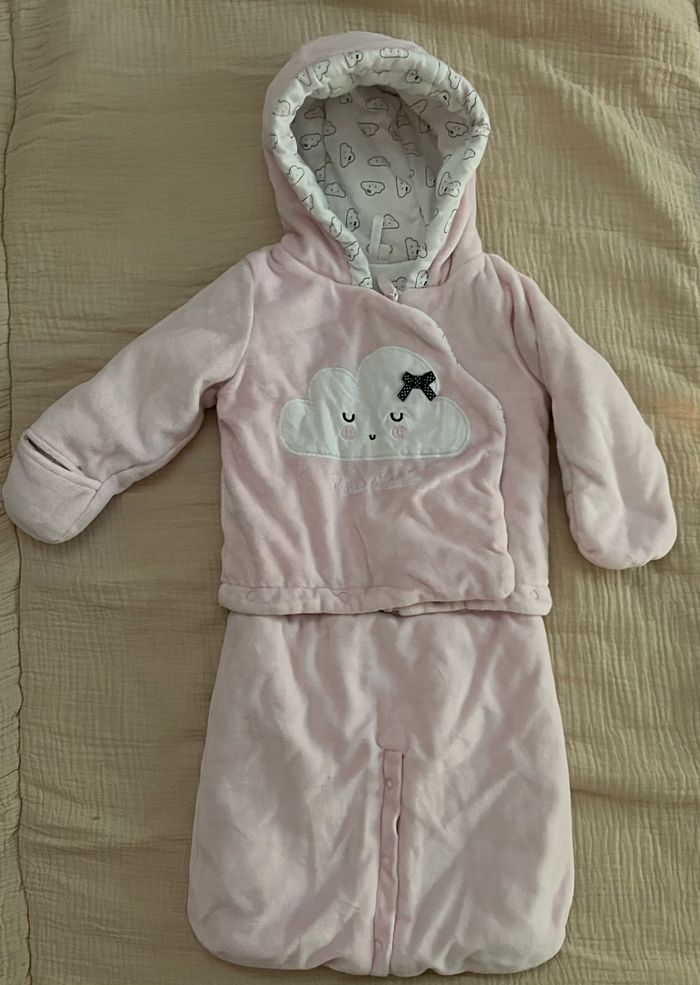 Combi pilote pour filles de la marque orchestra, taille six mois, 67 cm en parfait état jamais porté. Vous pouvez la décrypter pour faire juste un gilet. Vous avez les mauves qui sont intégrées ou alors vous pouvez la laisser en mode gigoteuse ou défaire les pressions entre les jambes pour pouvoir l’installer dans le siège auto.