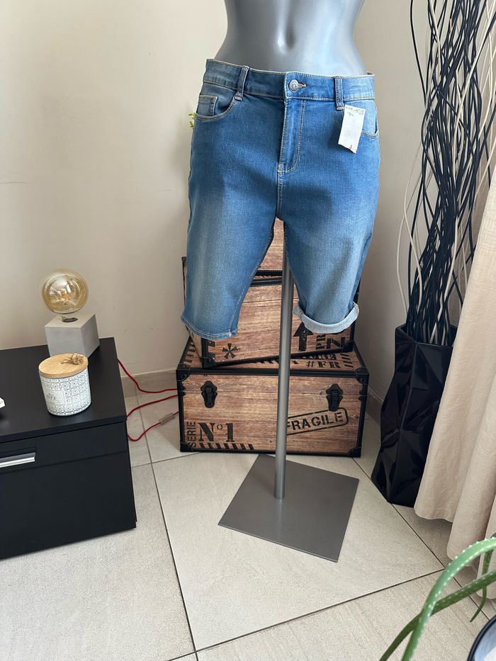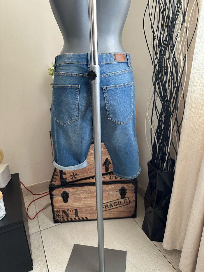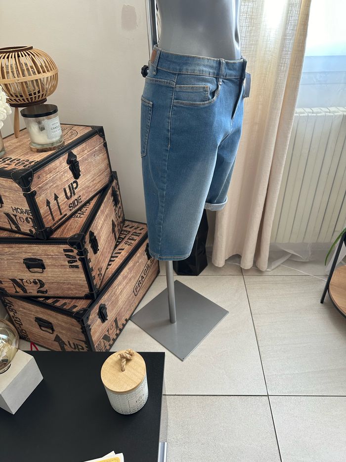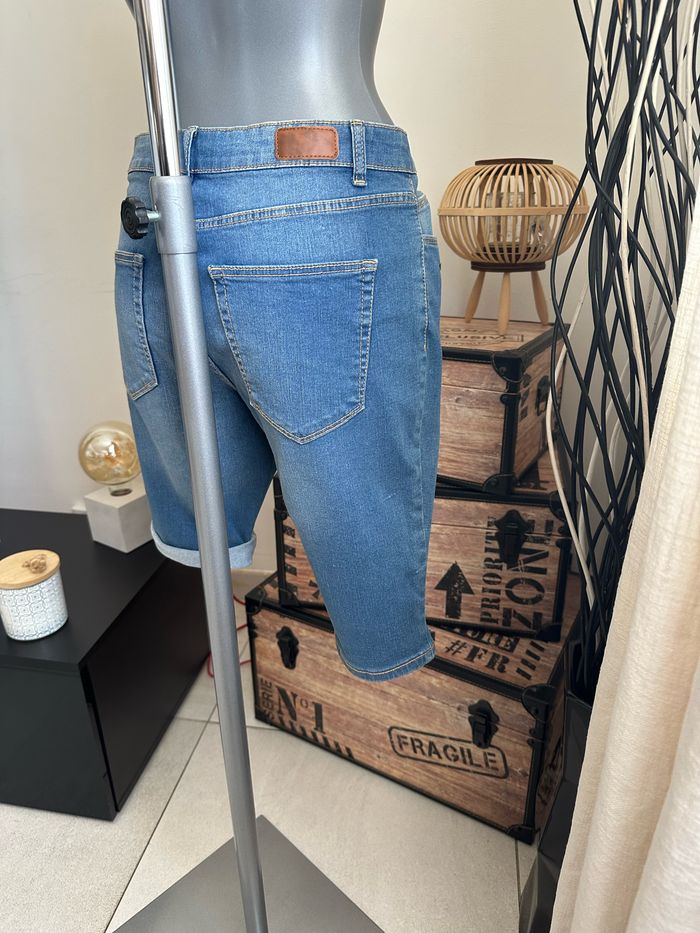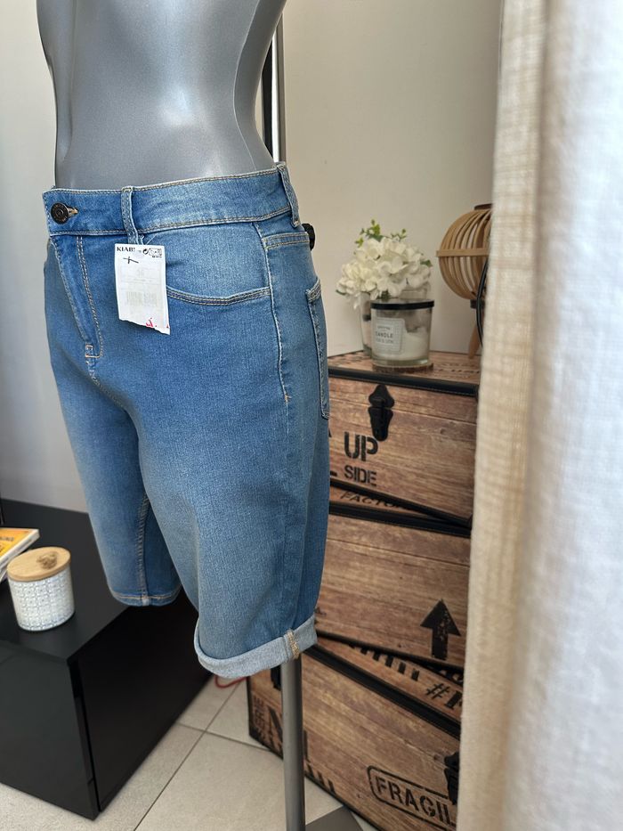 Short en jean , matière extensible , poches sur les côtés devant et poches arrière , passants pour ceinture Taille 36. Kiabi. Seconde main en très bon état