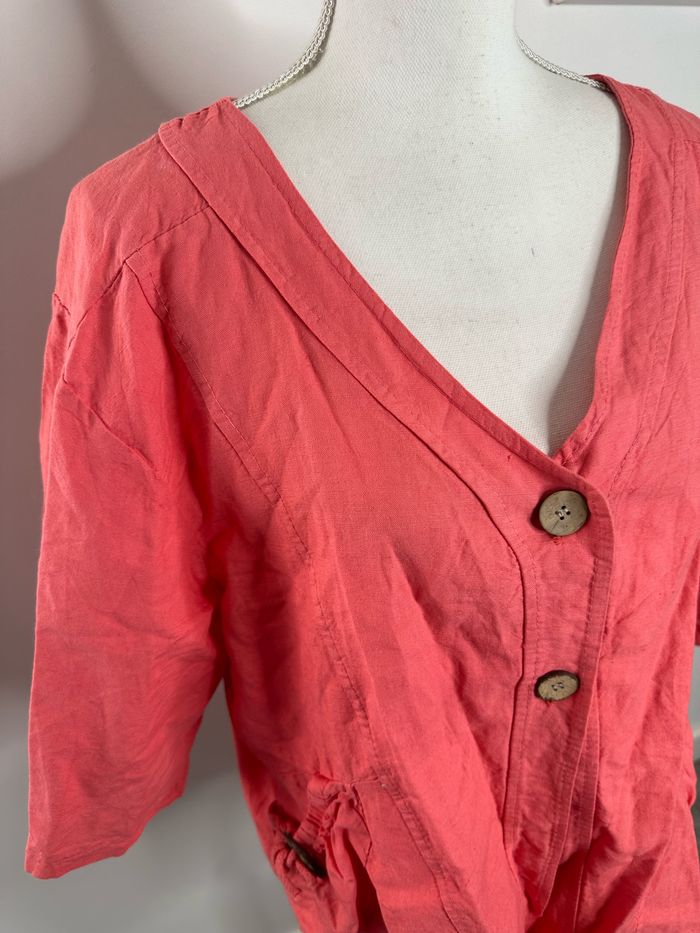 Blouse rose corail en lin T1 36 S - photo numéro 5