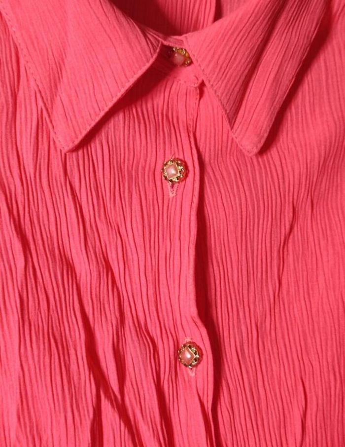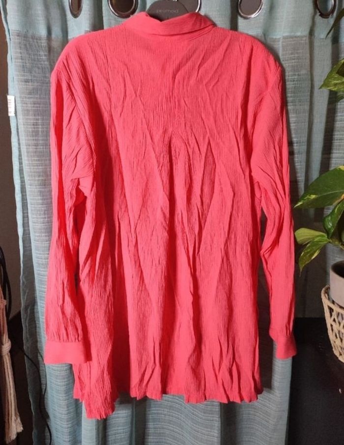 Chemise effet froissé de couleur rose en taille 50 (5XL) avec épaulettes. 100% viscose. En parfaite état.