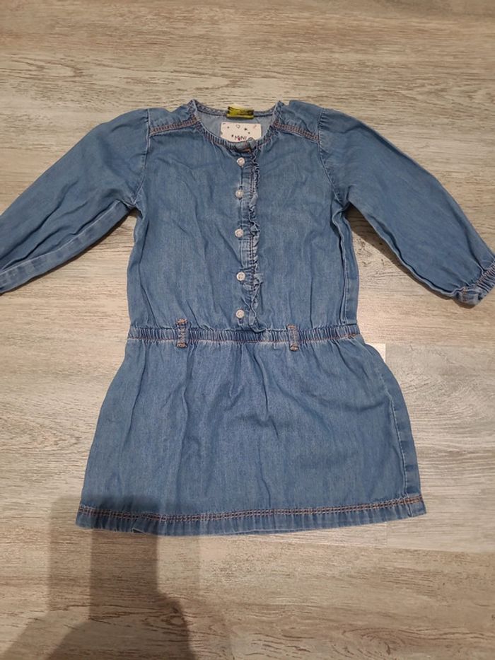 Robe en jean TAO, manches longues, jolis boutons pailletés, taille élastique Taille 18 mois