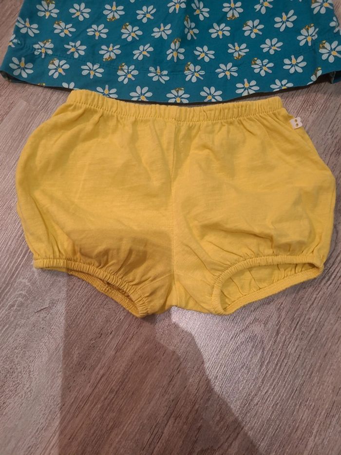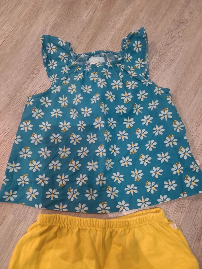 Ensemble comprenant une blouse à fleurs et 1 short jaune élastique Taille 9 mois