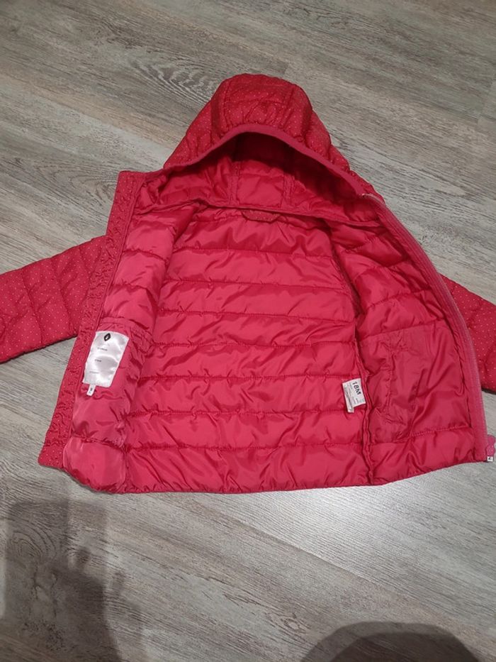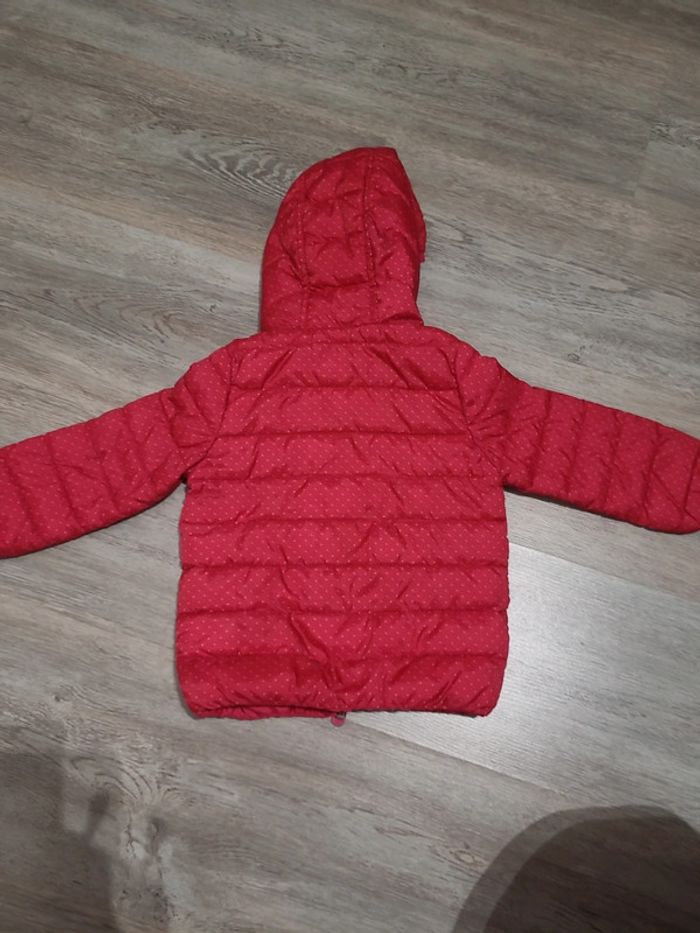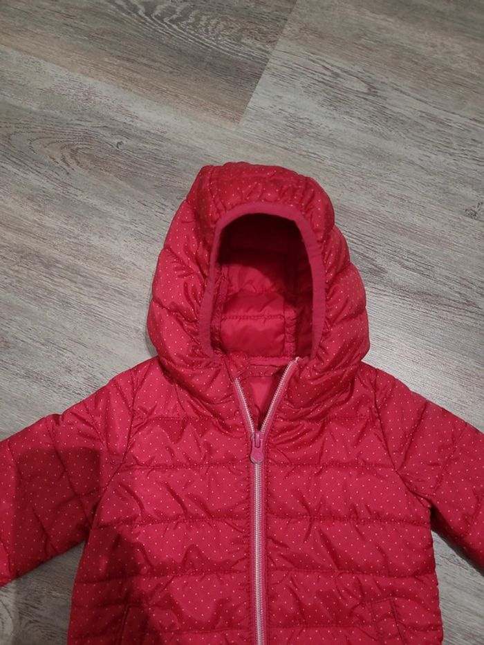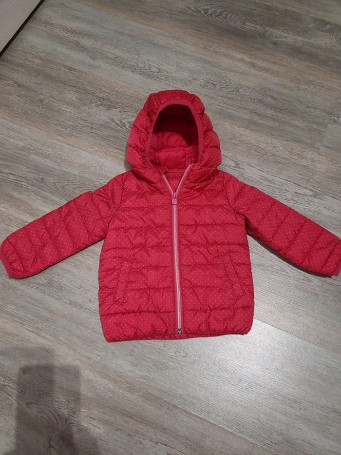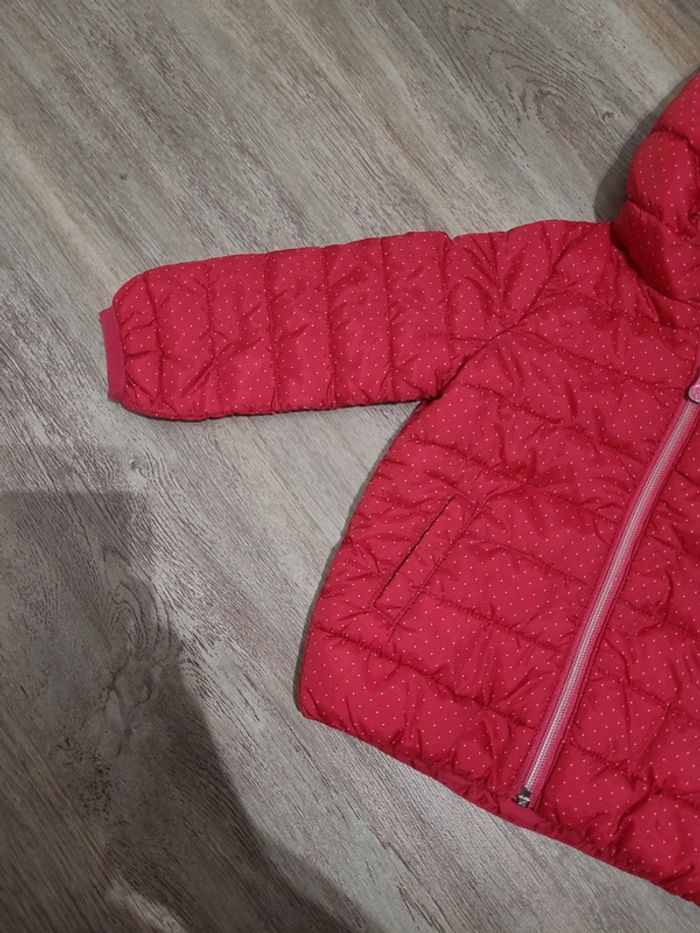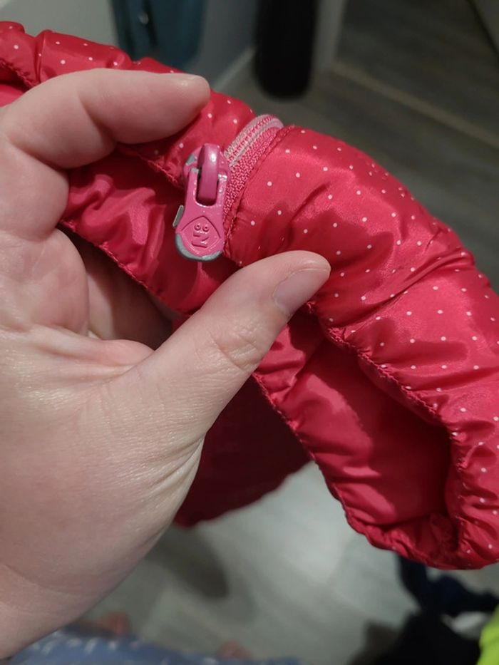 Doudoune matelassée Z, rose fushia à pois blancs, languette de la fermeture éclair légèrement écaillée Taille 18 mois