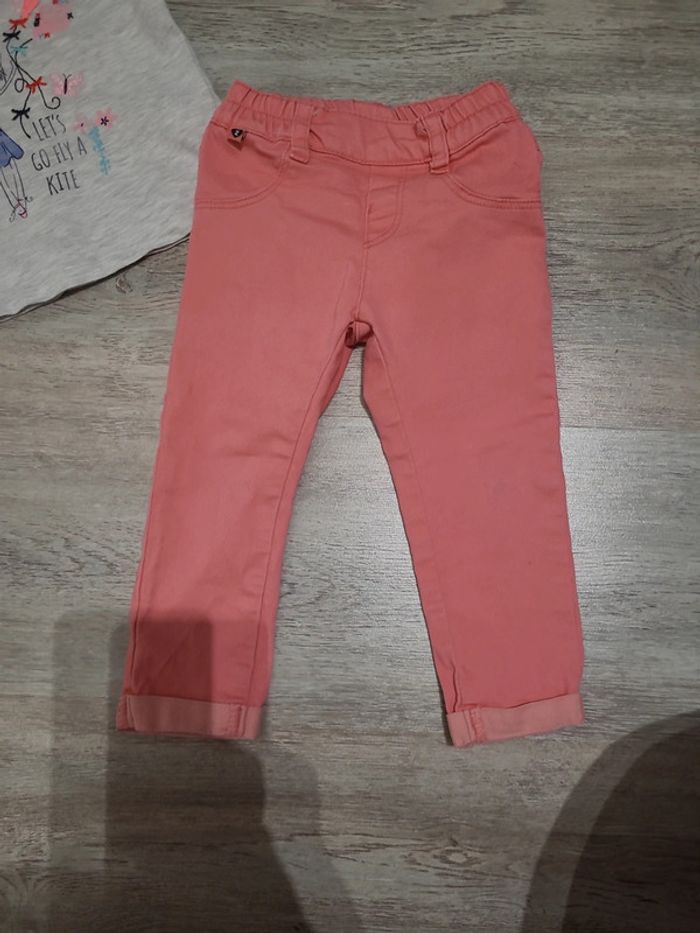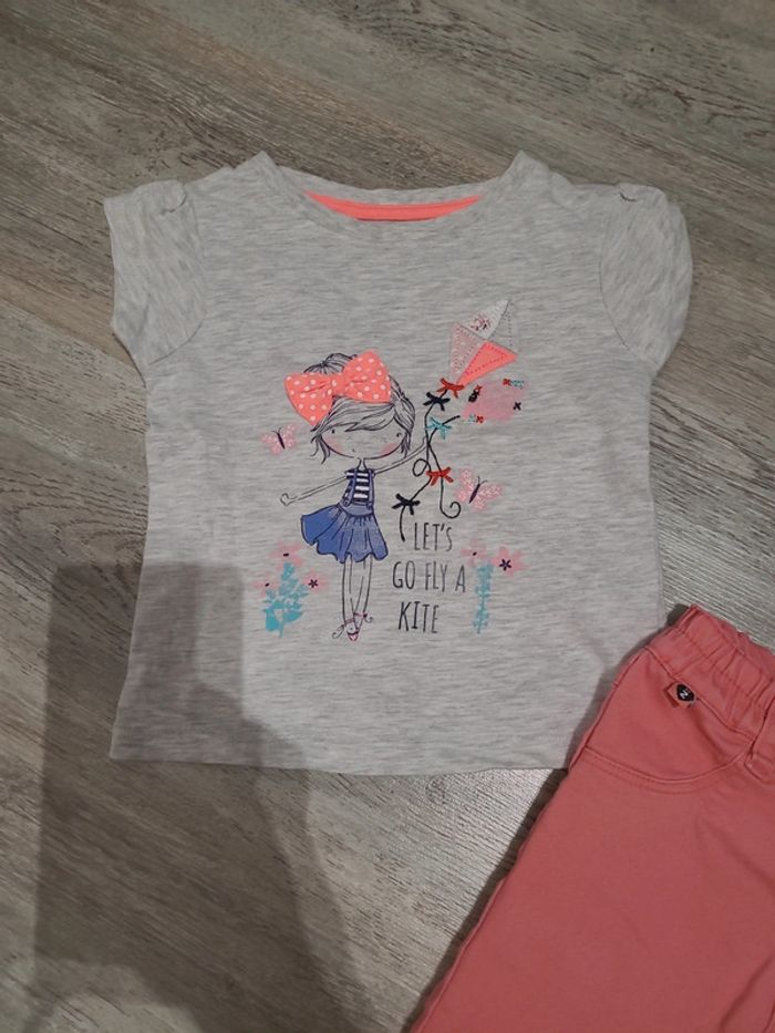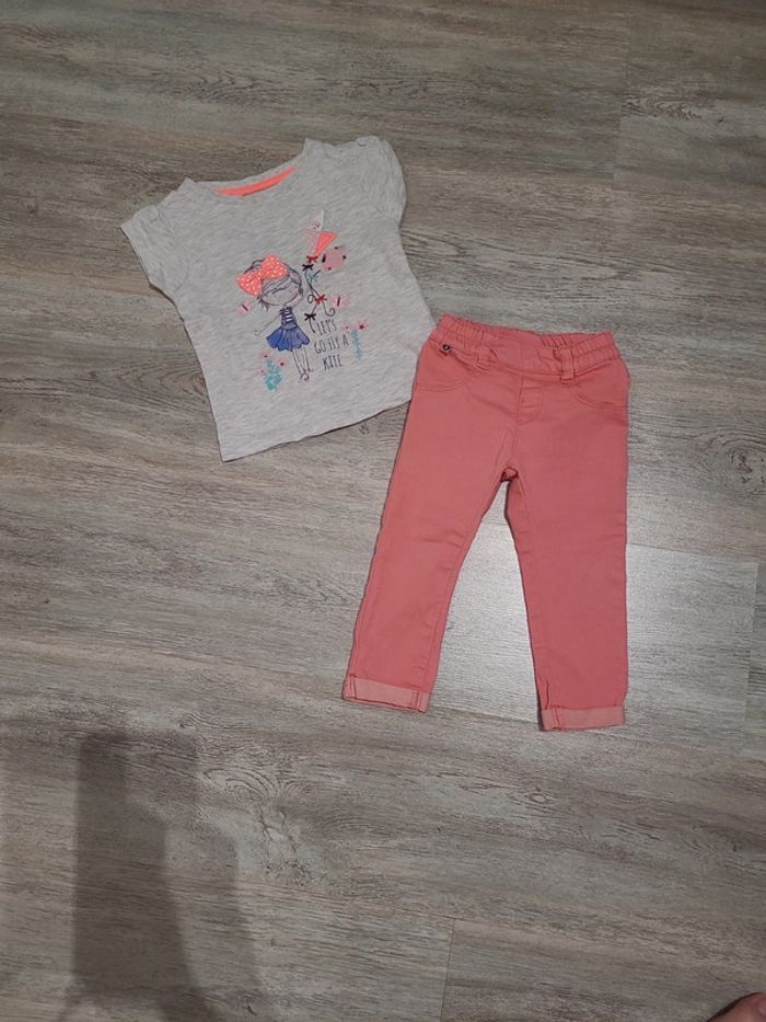 Ensemble comprenant 1 pantalon corail taille élastique Z taille 18 mois et 1 tee shirt gris chiné YOUNG DIMENSION taille 12-18 mois
