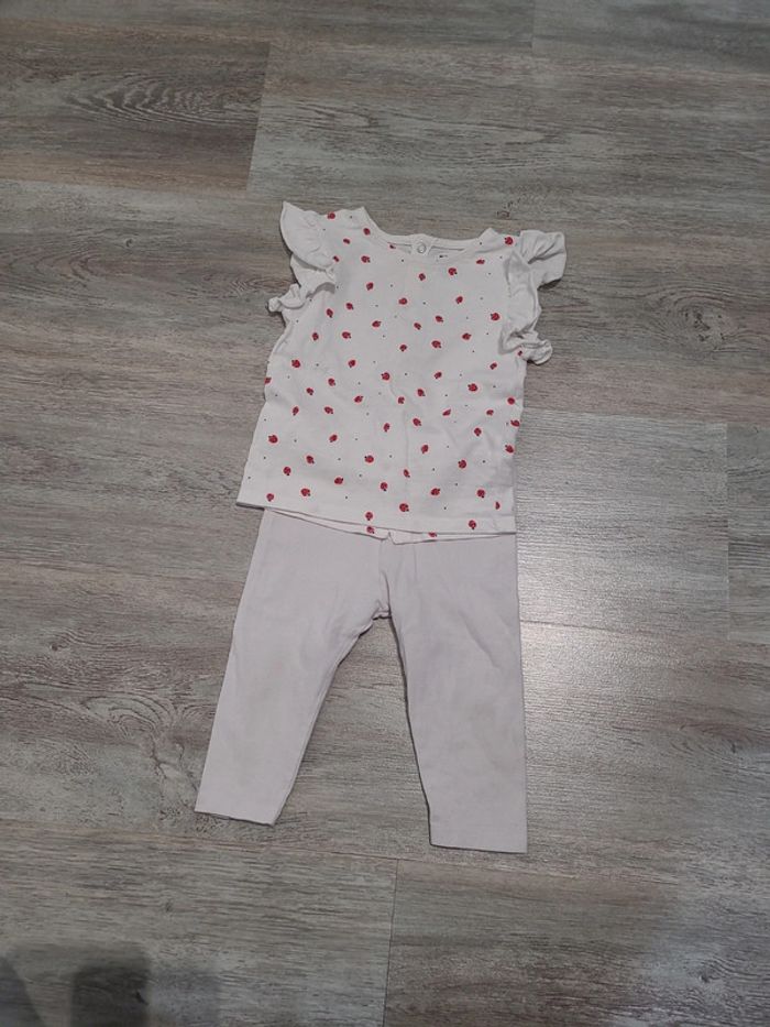 1 tee shirt blanc KIABI et 1 legging blanc pat et Ripaton Taille 12 mois