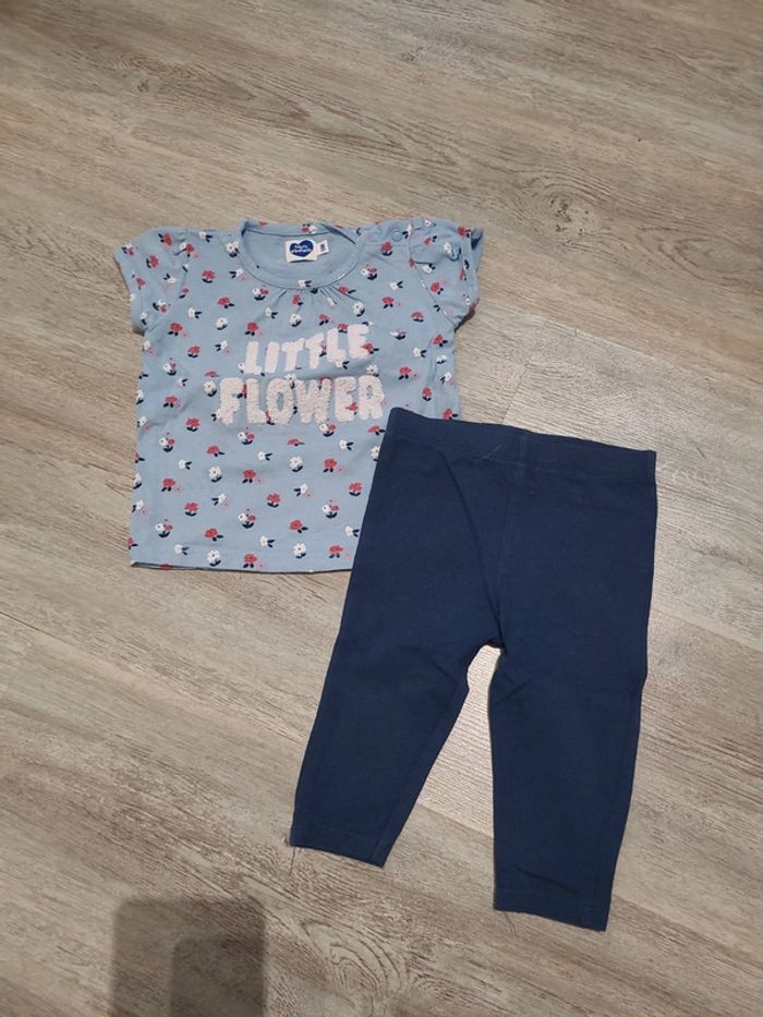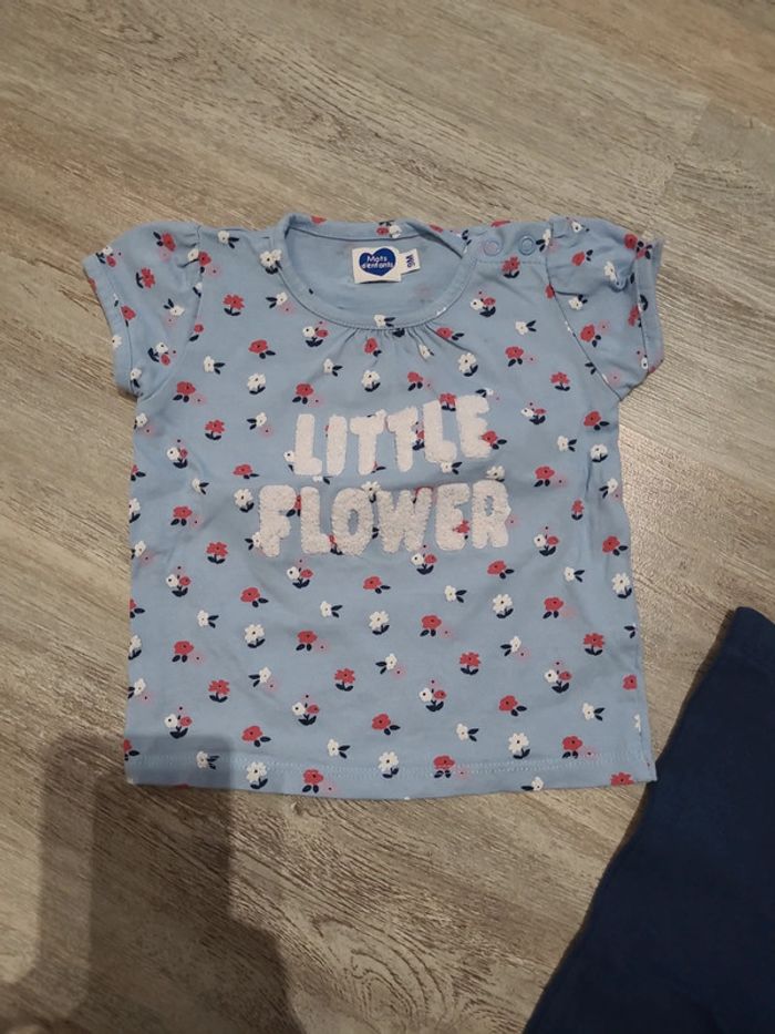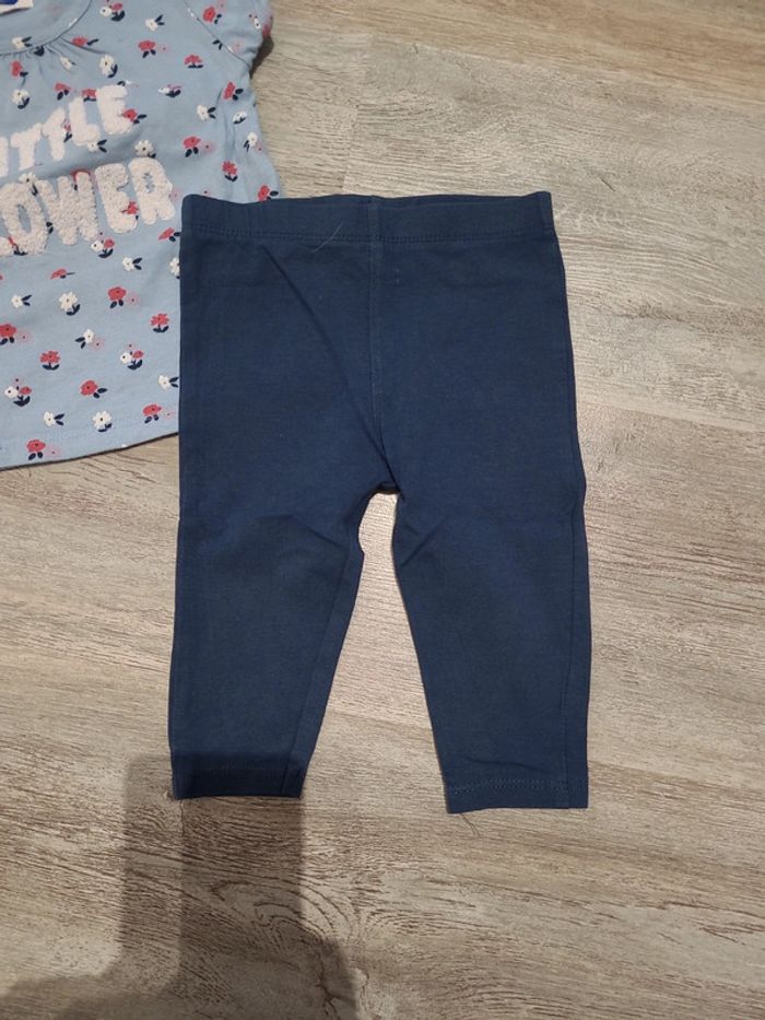Ensemble comprenant 1 legging bleu marine taille 12 mois et 1 tee-shirt à fleurs taille 9 mois