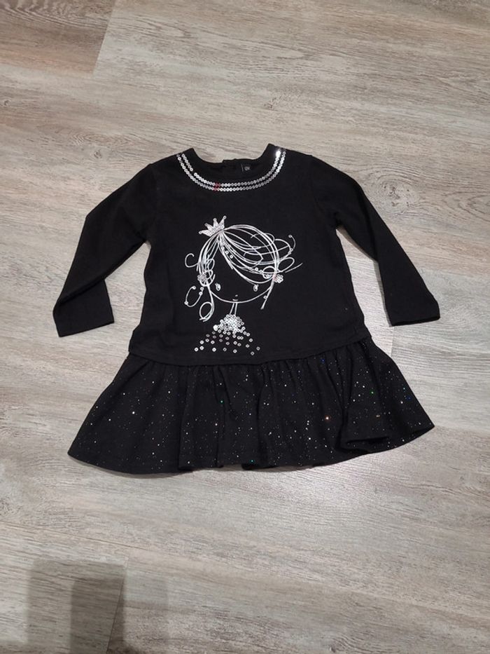 Robe noire manches longues avec paillettes argent Taille 12 mois