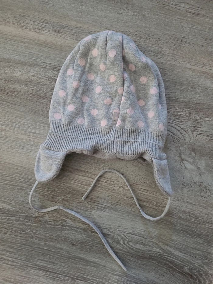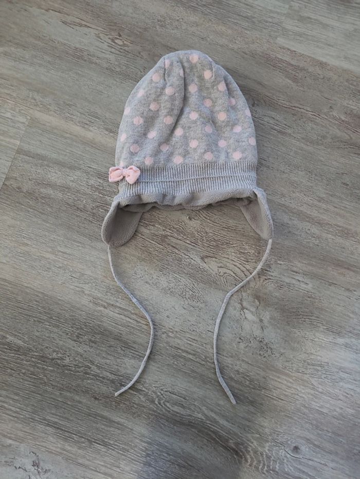 Bonnet chaud gris à pois rose - photo numéro 2