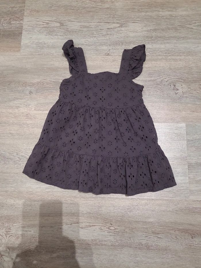 Neuf, très jolie robe en broderie anglaise gris anthracite PRIMARK, dos élastique Taille 6/9 mois