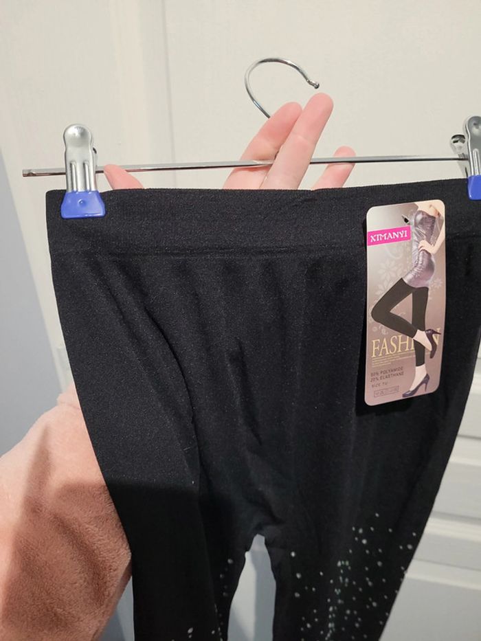 NEUF avec étiquette, legging matière collant opaque noir avec strass argents sur les jambes. Élastique, taille unique