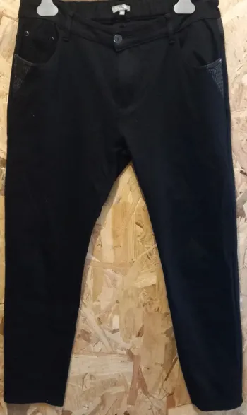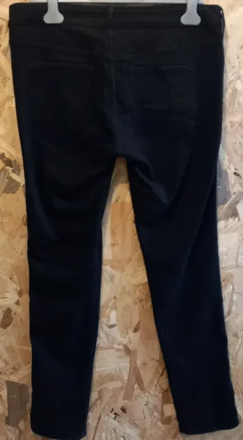 Pantalon blanc léger et agréable, mi lin mi coton. Parfait pour l'été. Des ourlets ont été faits (voir photos). Taille 38. Des défauts minimes : mini tache de rouille sur la ceinture interne (4e photo) et micro tache de rouille sur ceinture externe + petite tache jaunâtre dans le bas du pantalon (je n'ai pas essayé de la détacher, donc peut-être que ça peut partir, en tout cas très discret), voir sur les 3 dernières photos. Voir les dernières photos pour la longueur des jambes (mesure prise à l'entrejambe)