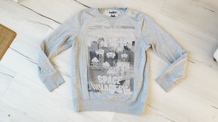 Vêtement homme pull gris Célio Soace invaders taille L - photo numéro 1