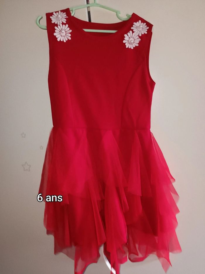 Robe habillée pour les fêtes ou déguisement taille 6 ans rouge avec fleurs blanches