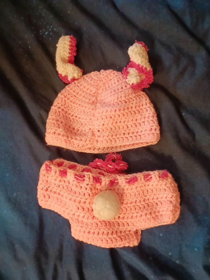 Petit ensemble en laine crochet cochon 6/12 mois - photo numéro 1