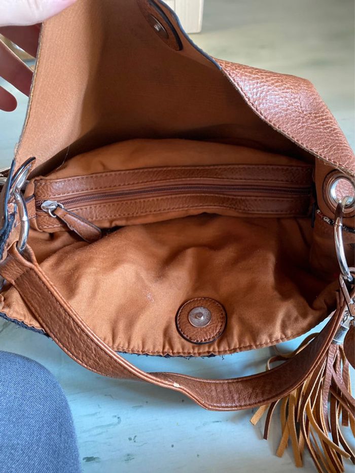 Sac à main bandoulière En très bon état , il manque juste le petit rond pour pouvoir ementer les deux coter pour qu’il se ferme
