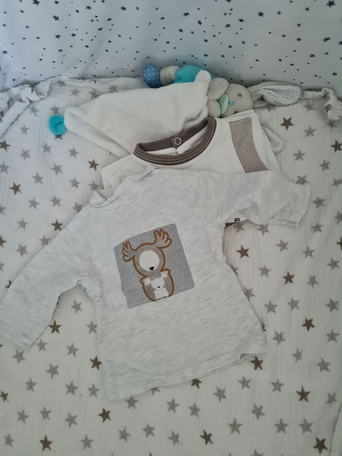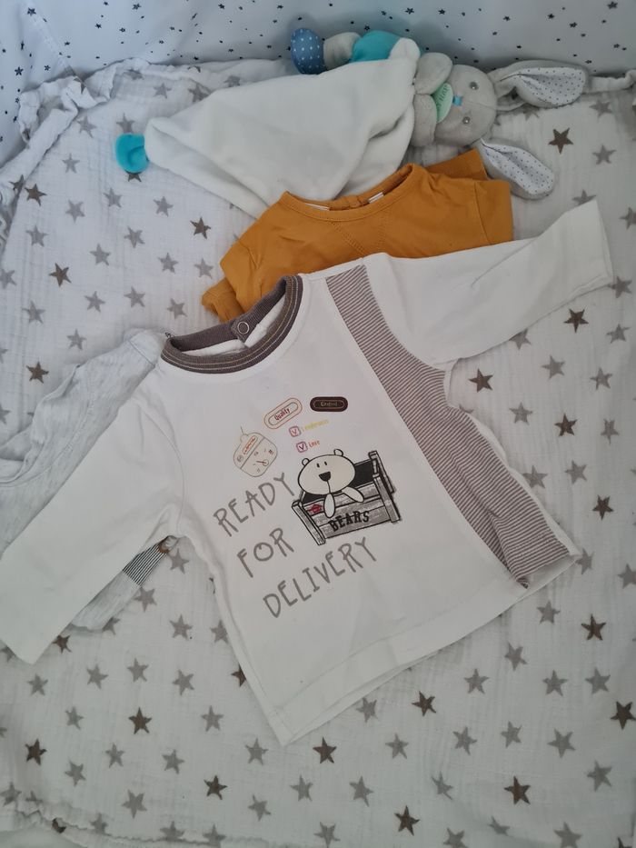Lot de 3 hauts manches longues taille 3 mois en très bon état, de differentes marques