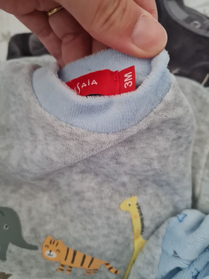 Lot de 4 pyjamas taille 3 mois en très bon état donc 2 neufs Différentes marques