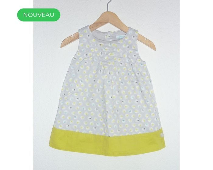 Robe de marque OBAIBI, imprimé à pois gris et jaunes, pleine de lumière. Etat excellent  Excellent état Obaïbi Vide dressing professionnel