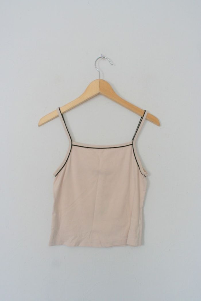 Débardeur beige taille 3, 100% coton, 47.5cm de long, 39cm d'aisselle à aisselle, 90g