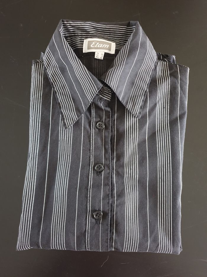 Chemisier noir rayé blanc – Etam – 36 - photo numéro 1