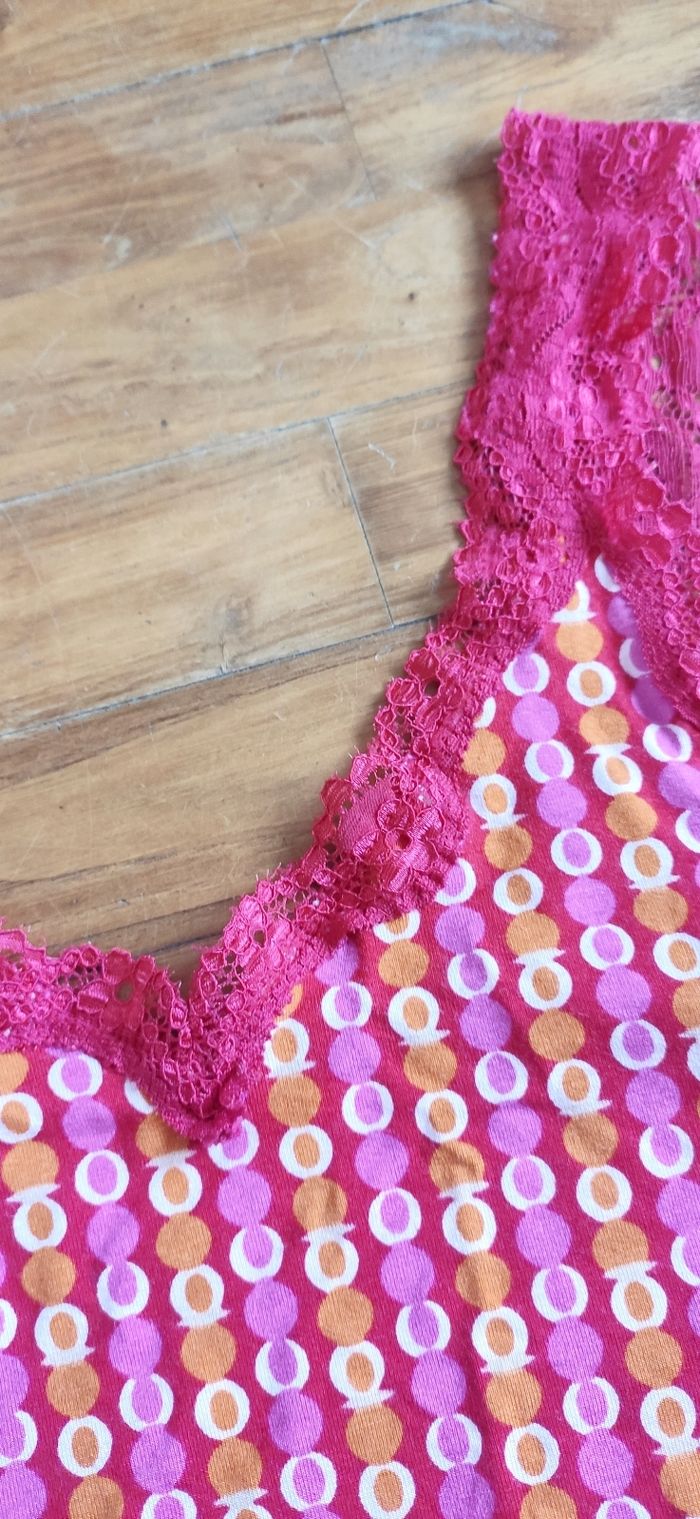 Débardeur avec dentelles, et petits pois.