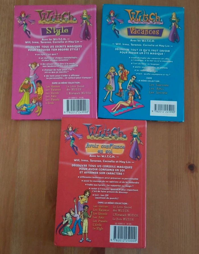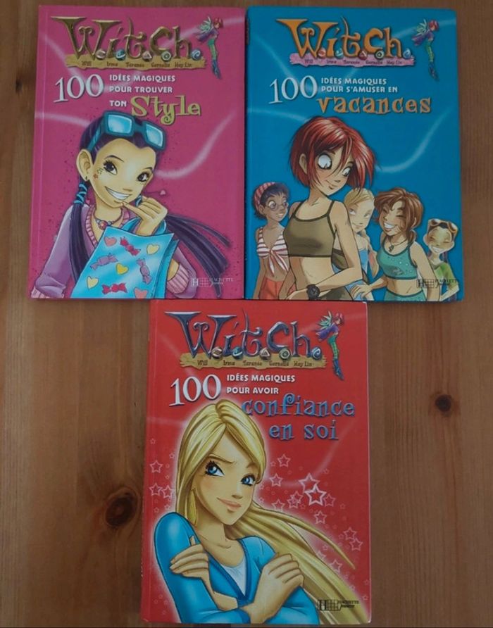 Lot de 3 livres Witch Hachette Comprend : - 100 idées magiques pour avoir Confiance en soi - 100 idées magiques pour s'amuser en Vacances - 100 idées magiques pour trouver ton Style En très bon état.