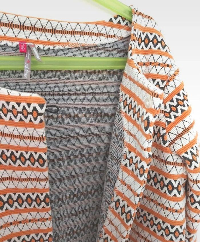 Veste maille jacquard à motifs ethniques Fille Manches longues Marque Orchestra Couleur : écru/ noir /orange Taille 14 ans 66% coton / 33% polyester / 1% élasthanne Se ferme par un bouton en haut de la veste. Neuve, jamais portée. (valeur boutique : 29,90€) Je vends la robe assortie.
