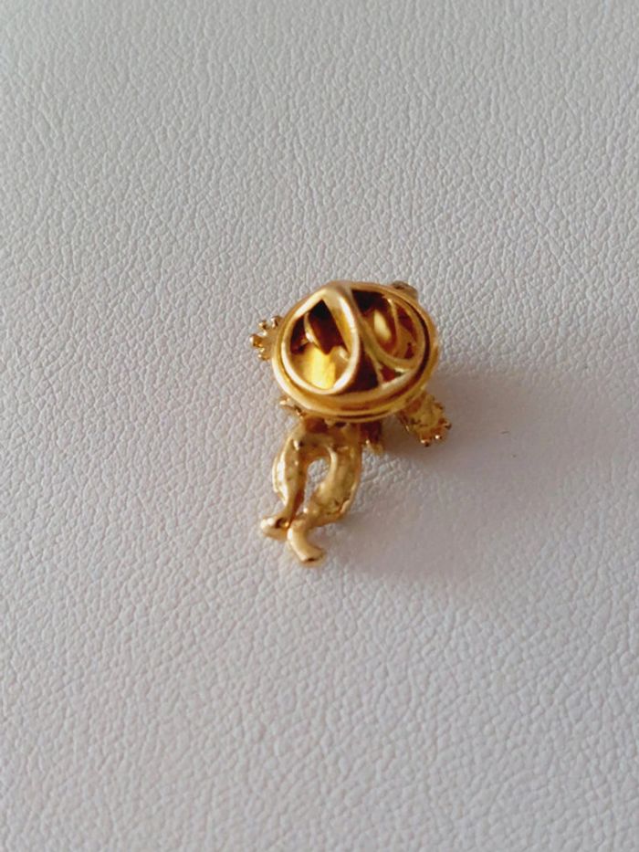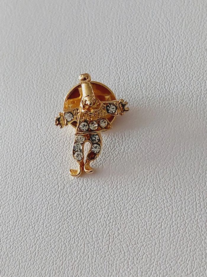 Pin's clown Doré avec strass .(il en manque 1) Jambes mobiles Hauteur : 2,2 cm En excellent état