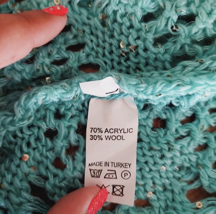 Très beau gilet crochet veste cardigan Marque Multiples créateurs Taille unique Couleur : bleu turquoise orné de petites pastilles paillettes Neuf, avec étiquette (Prix d'achat : 49€)