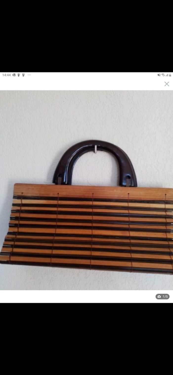 Jolie panier bicolore en bois de bambou très bon état