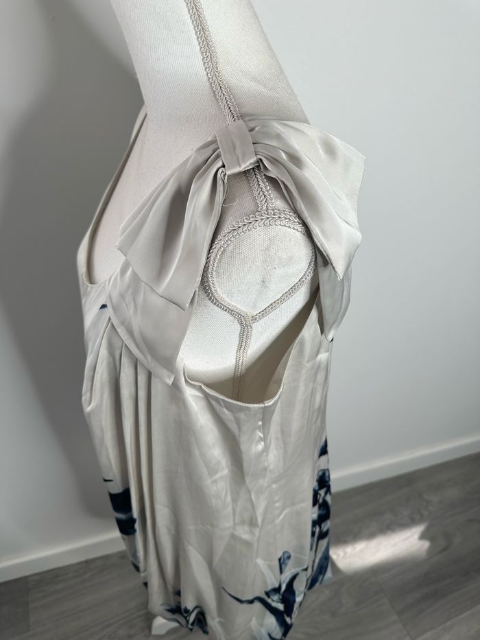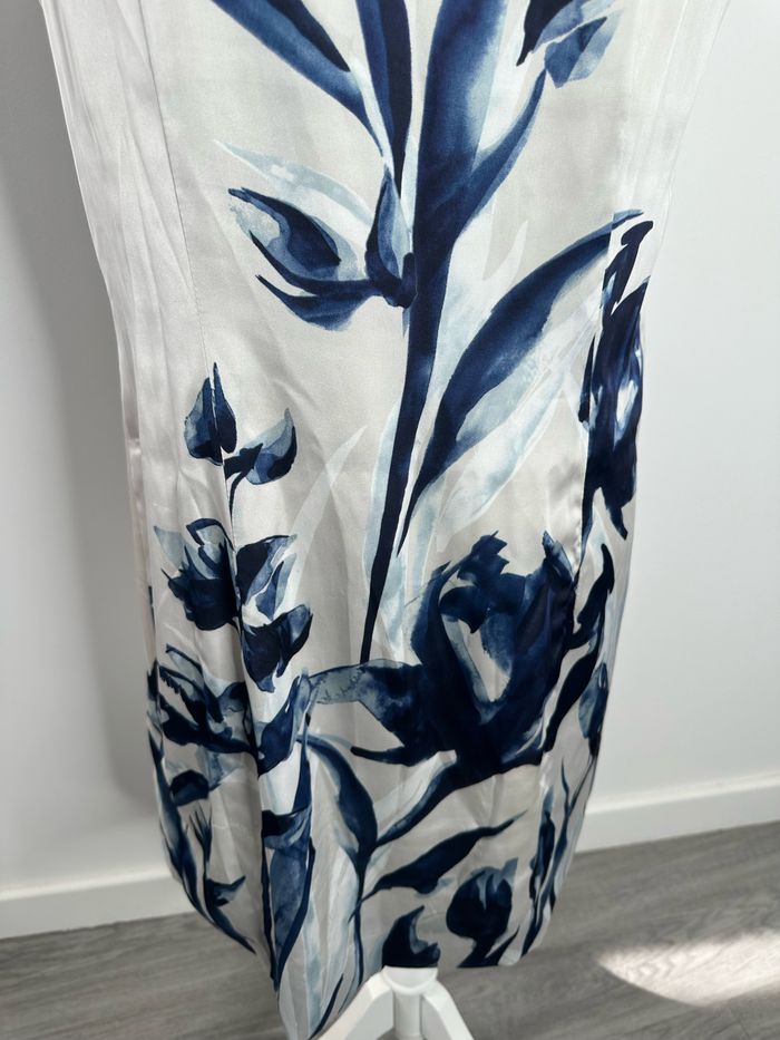 Robe satinée gris argentée et bleue marine à fleurs H&M T42 XL - photo numéro 10