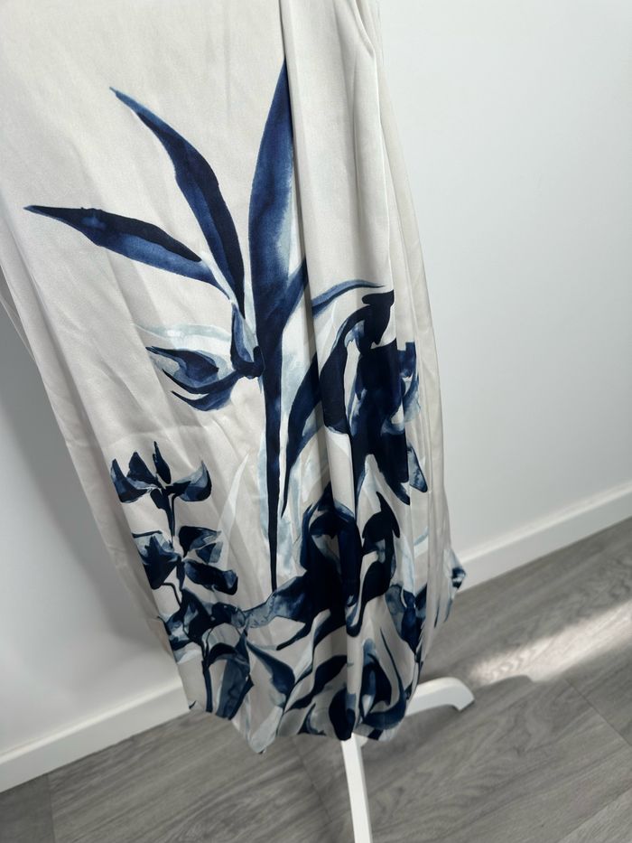 Robe satinée gris argentée et bleue marine à fleurs H&M T42 XL - photo numéro 9