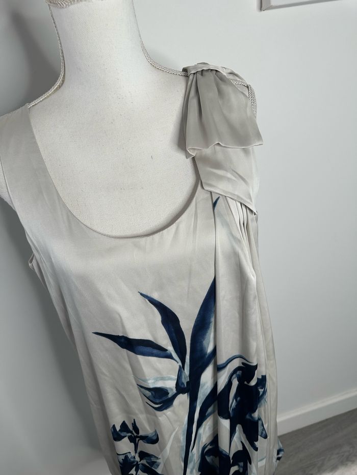 Robe satinée gris argentée et bleue marine à fleurs H&M T42 XL - photo numéro 2