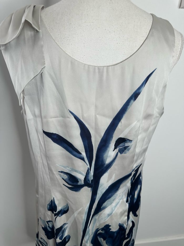 Robe satinée gris argentée et bleue marine à fleurs H&M T42 XL - photo numéro 8