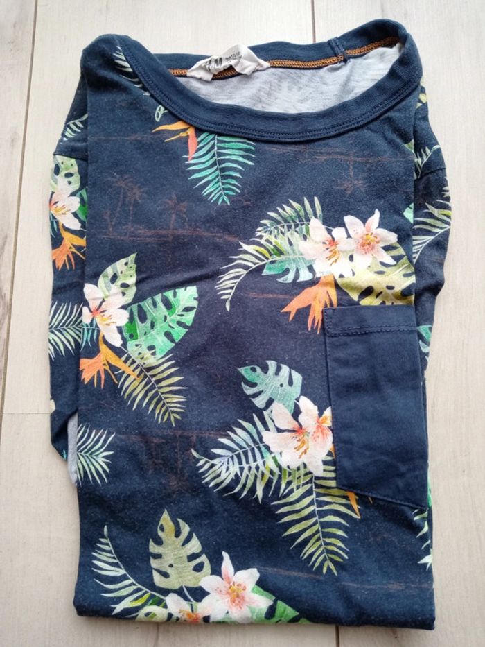 T-shirt "exotique" à manches courtes H&M, taille 14-16 ans. Très peu porté.