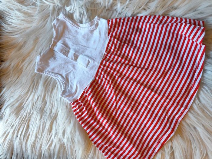 Robe blanche marinière rouge "maman d'amour" ⚠️⚠️certains articles à 1€ sont gratuits car défauts ou marques d'usure, à intégrer dans un lot⚠️⚠️ #malvy149mois