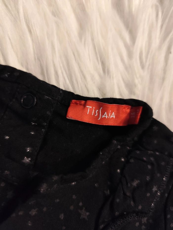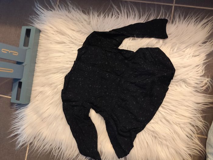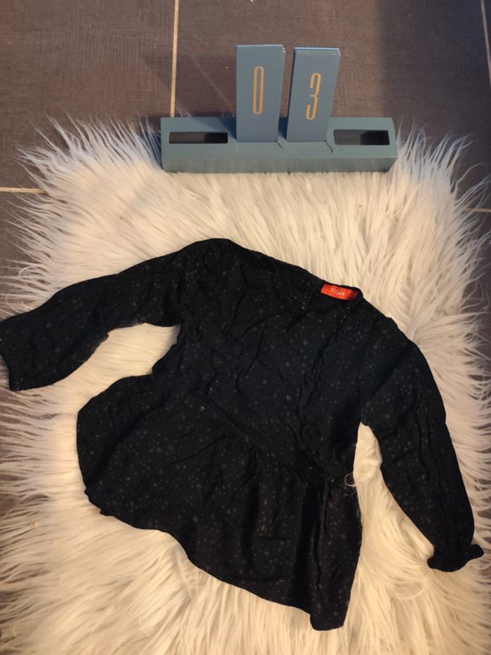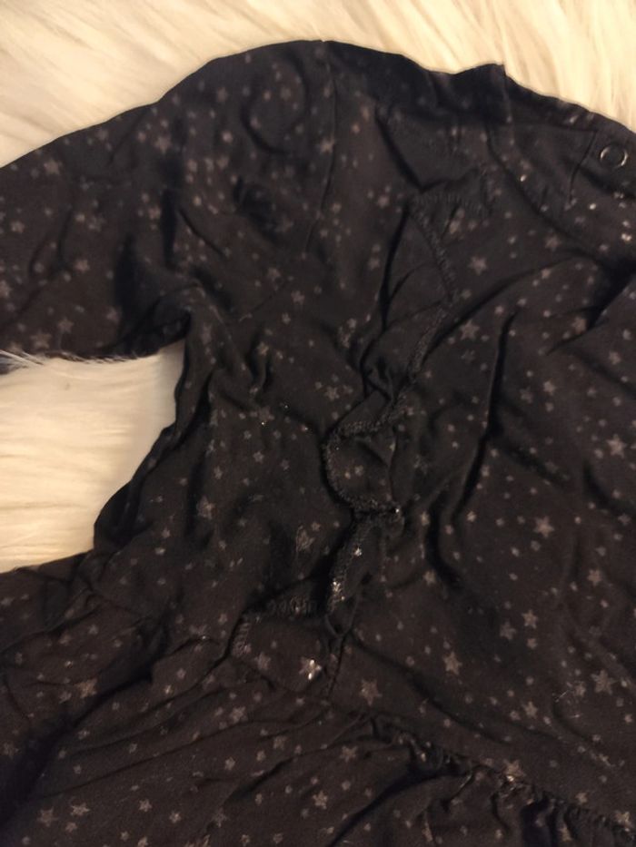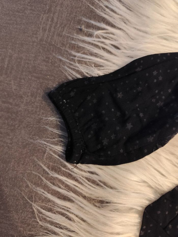 T Shirt ML fluide noir avec étoiles (elles étaient très argentées mais ont perdu vite les paillettes) Évasé à la taille Se resserre aux poignets Détails devant ⚠️⚠️certains articles à 1€ sont gratuits car défauts ou marques d'usure, à intégrer dans un lot⚠️⚠️ #malvy143ans