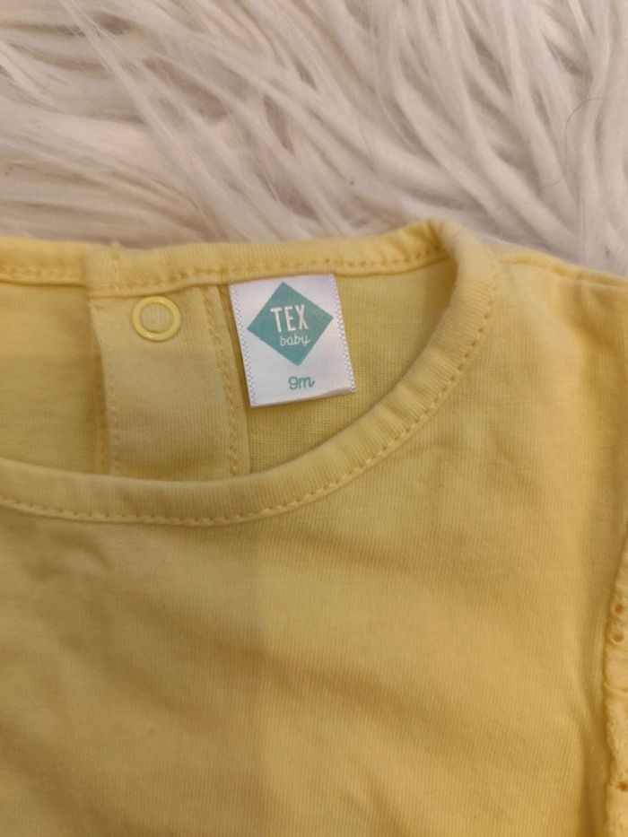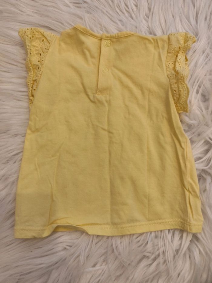 T shirt jaune avec dentelle aux épaules ⚠️⚠️certains articles à 1€ sont gratuits car défauts ou marques d'usure, à intégrer dans un lot⚠️⚠️ #malvy149mois