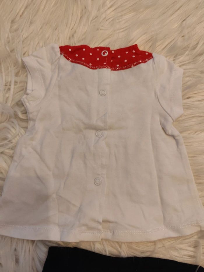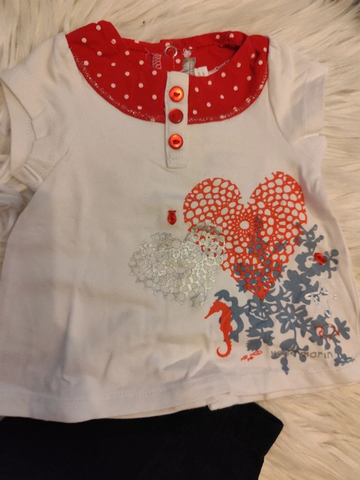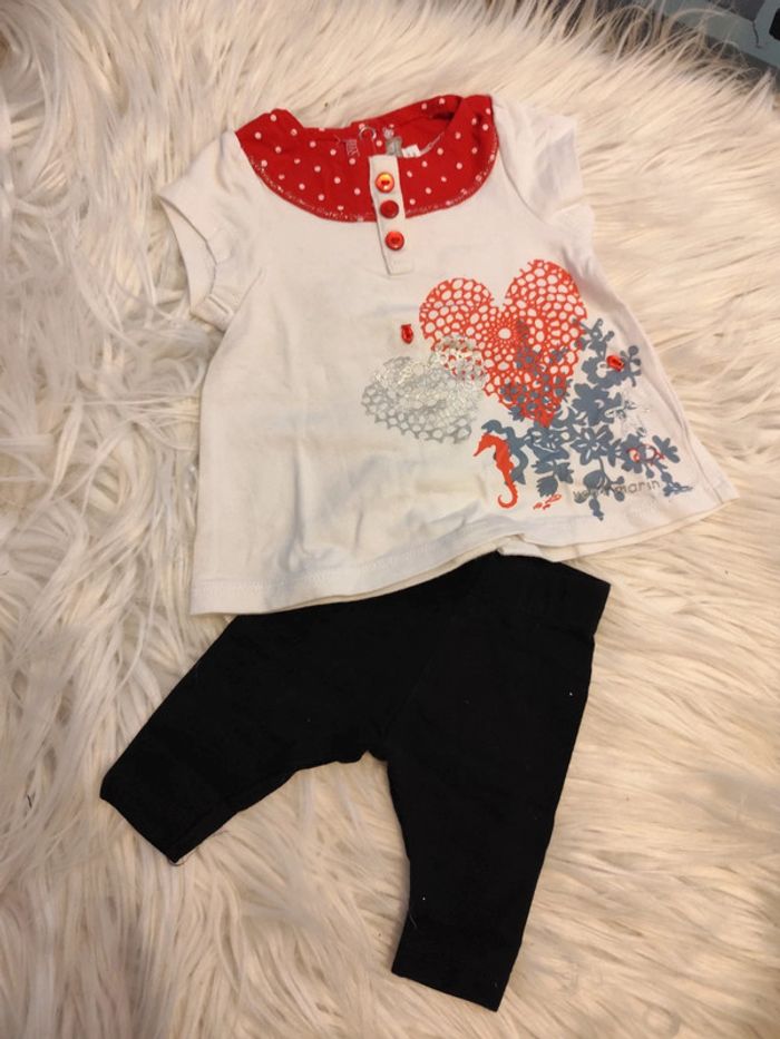 Petit ensemble t shirt blanc et rouge + corsaire noir ⚠️⚠️certains articles à 1€ sont gratuits car défauts ou marques d'usure, à intégrer dans un lot⚠️⚠️ #malvy141mois