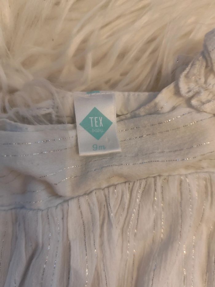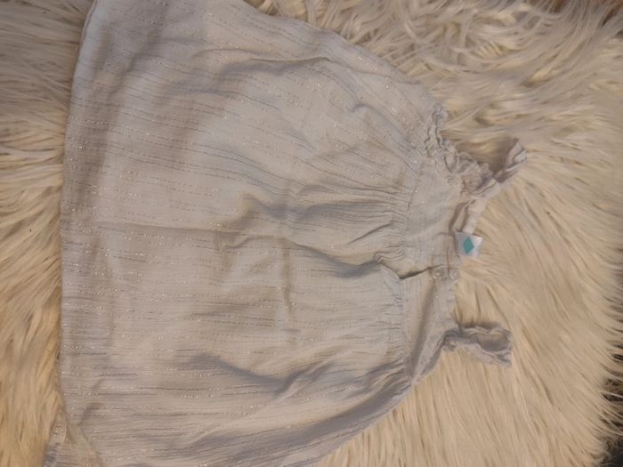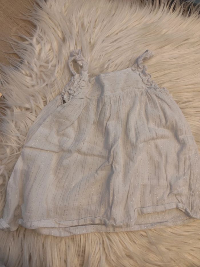 Blouse sans manche blanc avec liserés argentés ⚠️⚠️certains articles à 1€ sont gratuits car défauts ou marques d'usure, à intégrer dans un lot⚠️⚠️ #malvy149mois