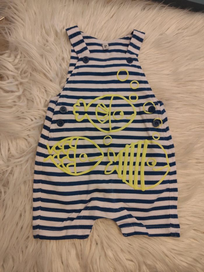 Combi short bleu marine / blanc dessin jaune fluo Bouton de rechange sur étiquette ⚠️⚠️certains articles à 1€ sont gratuits car défauts ou marques d'usure, à intégrer dans un lot⚠️⚠️ #malvy146mois