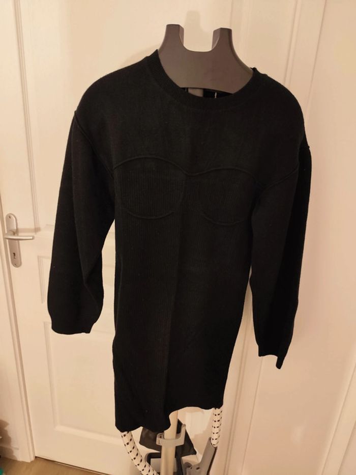 Robe pull en laine noire Manche large et resserré aux poignets #malvy14Mfemme