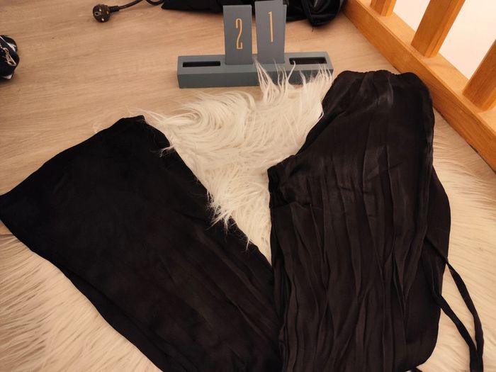Pantalon effet satiné noir avec ceinture Très bon état #malvy14Mfemme